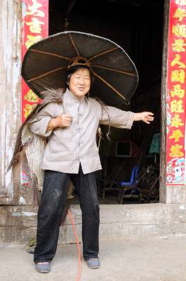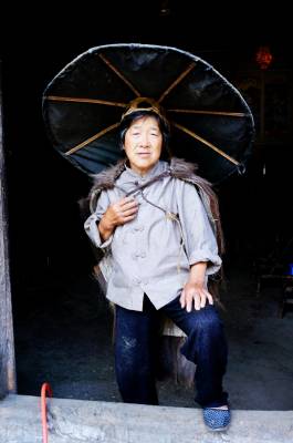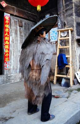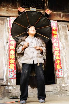 斗笠和蓑衣是中国农村几千年来使用的雨具,在今天被现代的雨伞和雨衣所代替,如今的学生己经很少知道和看到斗笠和蓑衣实物,斗笠和蓑衣正在逐渐消失在人们的视野中。近日,笔者在湖北省十堰市郧阳区五峰乡花红村一组拍老房子时见到了斗笠和蓑衣实物。72岁的房主王华菊老人向我们展示了蓑衣和斗笠穿戴法,让我们摄影人眼睛一亮,迅速投入到拍摄之中,留下这珍贵的镜头。为后人拍留老祖宗留下来的文化遗产。