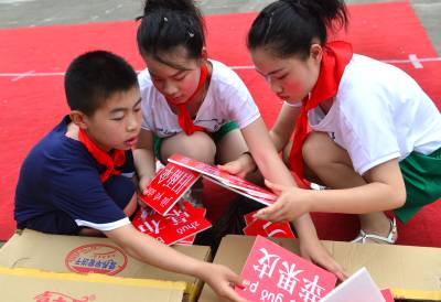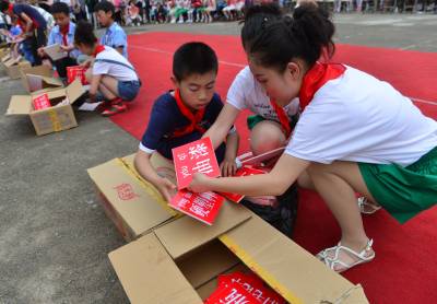 5月28日,建始县三里乡农科小学孩子进行垃圾分类比赛。近两年,该校开设环保课、请环保专业上现场宣讲低碳环保、垃圾分类知识,不定期举办垃圾分类比赛,使孩子们从小受环保知识熏陶。本报视界网刘波摄 建始新闻中心刘波联系电话13032794298