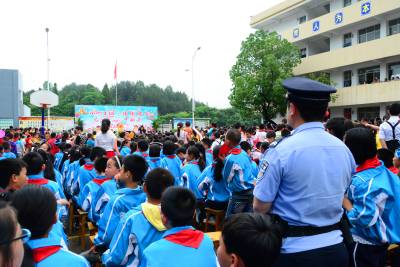 29日,宣恩县李家河派出所民警李龙和同事正在该镇中心小学“六一”儿童节活动现场担任安全警卫,确保孩子们过一个愉快的“六一”儿童节。