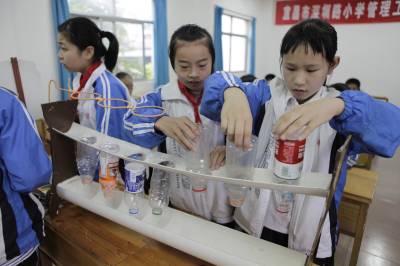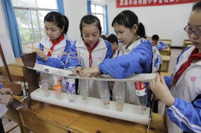 废旧品小发明迎”六一”5月27日,小学生正在用废旧材料制作”雨伞存放器”。当日,宜昌市深圳路小学利用课间开展迎”六一”废旧品小发明活动,1700多名小学生纷纷开动脑筋,用收集来的的废旧材料设计制作生活用品,以这一方式倡导环保低碳生活,迎接属于自己的节日。本报视界网黄翔摄13986769494谢谢