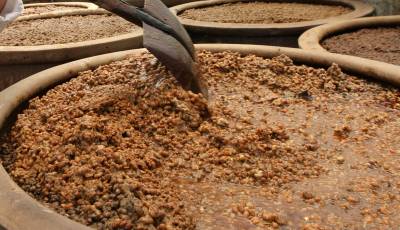 图二:晒制成酱红色的酱豆