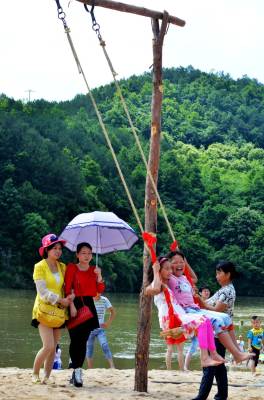 罗田 沙滩惹得游人醉 罗田县平湖乡有着丰富的沙滩资源,该乡从去年起就开发了沙滩游项目。5月30日上午,来自武汉等地的近500辆私家车齐齐开进平湖乡胡家河村的沙滩路边停车场。本县和外地游客4000余人在大沙滩上参加各种沙滩体育游乐活动,很多游客都是带着自家的孩子们到此游玩,为儿童增加了节日的乐趣。图为小游客在沙滩上高兴的荡秋千时的情景。 本报视界网 王志高摄