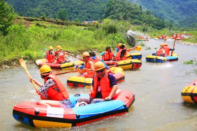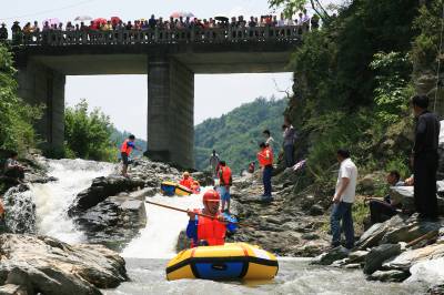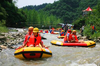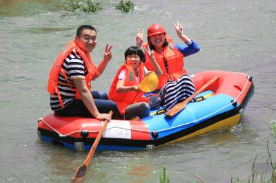 6月1日,游客在丹江口市官山镇吕家河村体验“武当仙山漂流”。武当仙山漂流河道全长7公里,落差63米。河道峡谷蜿蜒狭长,两岸重峦叠嶂,树木蔽日。景区集雄、险、秀、奇、幽于一身,游客既可感受水上休闲运动的惊险刺激,又可领略武当山区的旖旎风光。随着十房高速公路官山段建成通车,209国道修复完成,官山镇的交通瓶颈被打破,丹江口市仙山漂流有限公司决定重新投入资金700多万,对景区内进行了绿化、道路硬化、3.2千米河道清淤,对售票中心、停车场、游客接待中心等基础设施进行了改扩建。项目建成运营后,必将成为丹江口旅游新亮点,必将助力官山镇发展,助力当地百姓致富。(王东 张朝锋 岁本明)