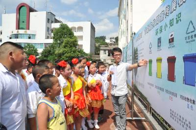 “随意扔弃的电池或塑料袋对环境产生严重的危害。垃圾分类管理,可以最大限度的实现垃圾资源利用,减少垃圾处置量,改善生存环境质量……”5月31日,鹤峰县实验中学操场上,老师正在给学生讲解垃圾分类的环保小知识。