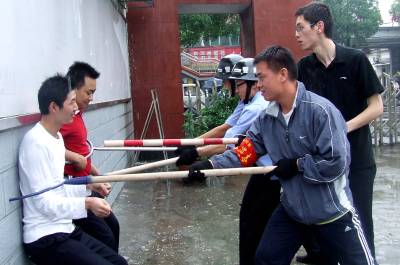 中小学领导”学”校园安保”两名持刀歹徒欲进校园行凶,被手持钢叉、警棍的校园安保人员及时制服,并被随即赶到的警察带走。”27日上午,十堰市张湾区组织全区31所中小学校负责人现场观看了校园安保演练,并观摩了张湾区实验小学等3所中小学校校园安保建设情况。据悉,目前,张湾区筹资500余万元,为辖区31所中小学和70所幼儿园配齐了安保人员,配置了钢叉、警棍、防割手套、报警器、摄像头、制服、手电灯等校园安保器械,采取学校、社区、公安等部门联动,组建校园护校队、社区巡逻队等网络,预防犯罪发生,确保学生安全。本报视界网张启国刘涛