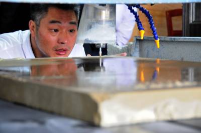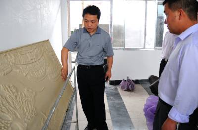 26日,宣恩县高罗乡一家石材加工厂里,技术员正在调试雕刻机。该厂选用大理石、古生物化石、砂岩等天然石,经过防水处理、机器雕刻等工艺,制成碑石、城市园林制品、建筑构件、石木制器具或工艺品,让一块二三十元的石材价格翻了几番。