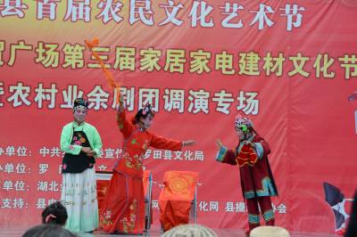 5月30日,罗田县白庙河镇东腔戏剧团,在该县首届农民文化节上演出的东腔戏“黄映虎抢亲”,受到现场观众和评委的高度赞赏。鄂东著名的地方戏曲“东腔戏”,是湖北省非物质文化遗产的重点保护剧种,近年来在省、市、县各级政府和文化主管部门的高度重视和大力支持下,白庙河镇党委、政府把弘扬传统民俗文化作为该镇推进精神文明建设的重头戏来唱,投入大量人力、物力、财力,传承和弘扬以“东腔戏”、“畈腔”为主的地方特色民俗文化,受到广大人民群众的一致好评。该镇的“东腔戏”、和“畈腔”多次荣登央视和省、市、县大舞台,曾荣获湖北省戏曲表演一等奖。视界网刘放鸣摄影