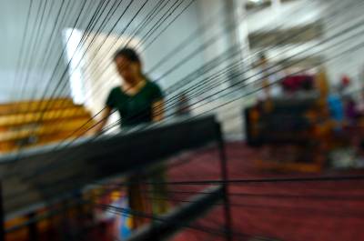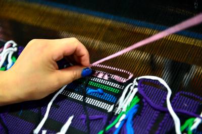 6月2日,恩施土家山寨织锦公司员工在手工编织“西兰卡普”。