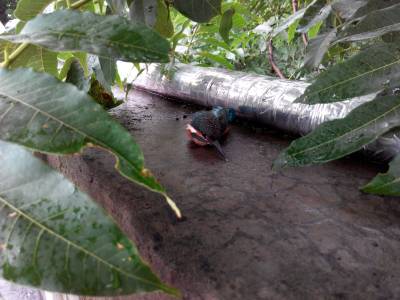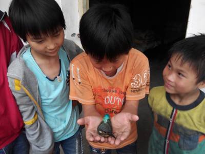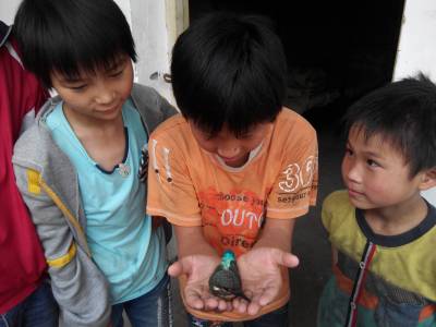 6月3日,天还淅淅沥沥的下着小雨,一只受伤的啄木鸟落在了十堰市郧阳区白浪镇九年一贯制学校的操场上,被正在玩耍的小朋友们看见了,他们用双手小心翼翼的把它捧在手里,给它包扎了伤口,随后把它放归了山林。(颜克存 摄)