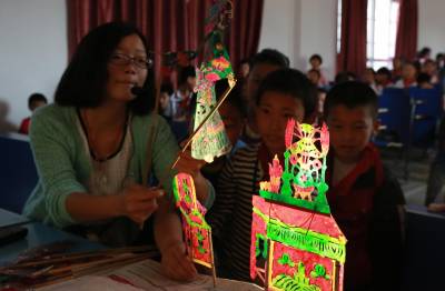 6月5日,竹山县宝丰镇施洋小学学生正在了解学习“非遗”“堵河皮影”知识。据悉,竹山县已有民间文学《女娲传说》、传统美术“堵河剪纸”和“绿松石雕刻技艺”、传统音乐“竹山牌子锣”和“官渡民歌”、传统戏剧“堵河皮影”等多个非物质文化遗产项目入选省级非遗名录。日前,该县在各中小学大力开展传承“非遗”活动,让学生关注身边的文化遗产,认识“非遗”,了解“非遗”, 保护“非遗” ,传承“非遗” 。