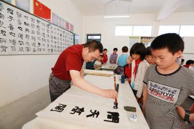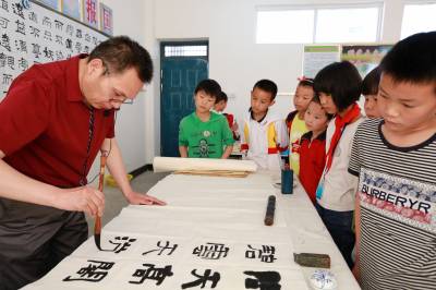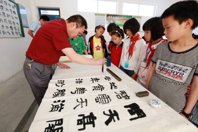 6月5日,竹山县宝丰镇施洋小学邀请县书法家协会会员胡斯贵为学生上毛笔书法课。为全面推动落实“书法进课堂”,继承与弘扬中华民族优秀传统文化,该县各中小学从小学三年级起,将开设专门的毛笔书法课,结合学科特点开展形式多样的书法教育,并通过有序开展书法讲座、比赛、作品展览、兴趣小组等系列活动,提高学生写字兴趣,培养学生的汉字书写能力。
