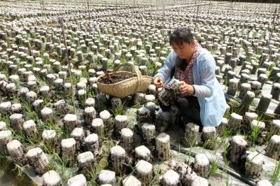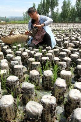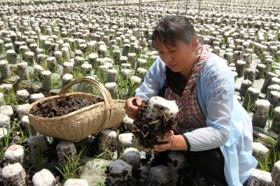 6月7日,房县城关镇东关社区农民曾明丽在桃园基地釆摘黑木耳。房县利用废弃木屑、秸杆栽培袋料耳菇,拓宽农民收入渠道。目前,该县已建成全国耳菇之乡,国家、湖北省黑木耳、香菇出口基地县,耳菇年产量达1万吨,产品销往美国、英国、韩国等10多个国家和地区,实现收入达2.4亿元,创汇8000多万美元,带动了6万农户从事耳菇生产,栽培耳菇农民年人均增收1200元。