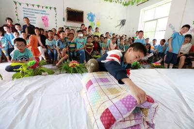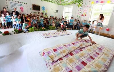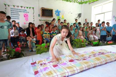 6月7日星期天,竹山县宝丰镇天英留守儿童托管中心的孩子们正在进行叠被子比赛。为培养留守儿童养成良好的生活习惯和生活技能,该托管中心以“我参与,我快乐,我能干”为主题,有效开展符合留守儿童身心健康发展的生活技能大比拼活动,锻炼留守儿童穿、脱、叠等方面的基本生活技能,增强自信心,提高自理能力。