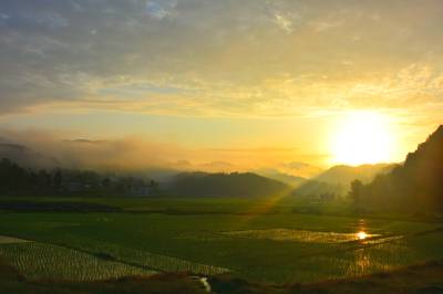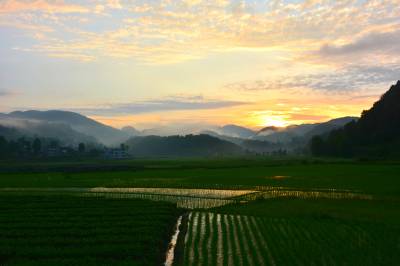 湖北南漳:一汪湖水映晚霞
