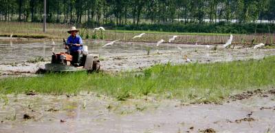 又是犁耙水响时 6月6日,摄影师在武穴市余川镇卢河畈看到,农民用自己新买的机耕船整田插秧,无数只白鹭鸟前来唱和,好一幅耕乐图!视界网冯怡红摄