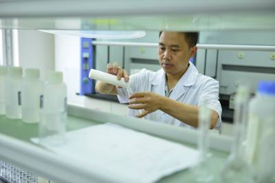 世界硒都新名片 6月8日,国家富硒产品质量监督检验中心工作人员忙着给送检的产品做硒含量检测。该中心配备了世界先进的检验检测仪器设备,能快速检测出1500多项产品的硒含量,填补了多项行业空白。投入运行4个月来,已开展各类检验检测业务5115批次,已成为一个功能完善、幅射全国的权威富硒产品公共服务平台,更是“世界硒都”旅游观光亮点、富硒产业集群发展的孵化器和恩施州招商引资、项目建设的新名片。(视界网秦卫飞摄)