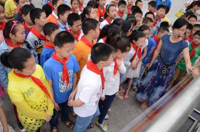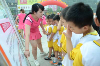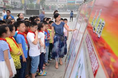 6月9日,安陆市档案局展出500多张图片资料,介绍“前进中的安陆档案事业”,让市民“走近档案”,了解档案,庆祝“国际档案日”。图为:工作人员正在给小学生讲解档案基本常识。