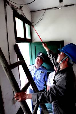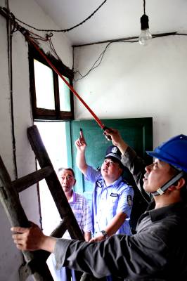 6月9日,针对彻查用电隐患需要专业设备专业知识的实际,秭归县公安局九畹溪派出所组织民警带上专业电工,对当地福利院、学校、医院等人员集中居住场所的输电线路和电源插座等元器件全面安检。对现场发现的 “线路老化”、“线路漏电”等诱发火灾、触电事故的安全隐患,由电工用专业化的操作手段予以就地整改,并由民警和电工对相关人员进行安全用电的教育培训。 图、文:吴令剑 电话:18972594962 地址:秭归县公安局政工室 邮编:443600