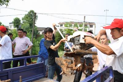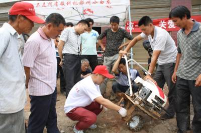 6月9日,竹山县农机局“三夏服务工作队”技术员深入擂鼓镇金岭村为农民免费检修农机,并现场传授了“小白龙”新型多功能微耕机的技术要领。当日,竹山、竹溪和房县的50多名“农机手”汇聚该村参加“新型农机现场演示会”。 入夏以来,该县组织17支“三夏服务工作队”深入田间地头开展免费检修各种农机具,培训农机手,目前,全县已投入各类农机具5000多台,培训农机人员2000多人,完成农机作业面积10多万亩,小型微耕机成为广大农民投入生产的抢手货。