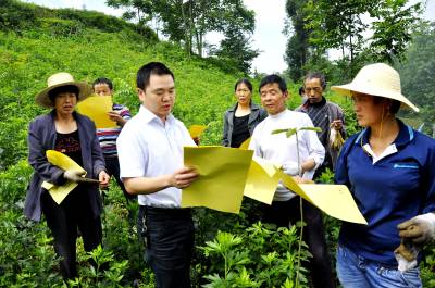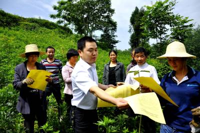 6月10日,在恩施市红土乡红土溪村帅家垭组,财政专管员正在田头宣传今年粮食直补有关政策。
