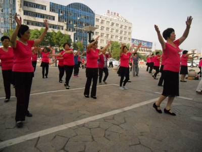 > 社区女性时兴跳舞健身