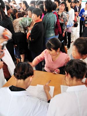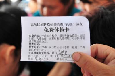 派发”免费券”为农村妇女送健康