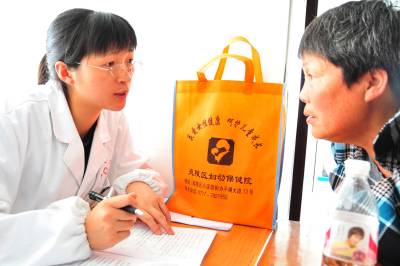 > 派发”免费券”为农村妇女送健康