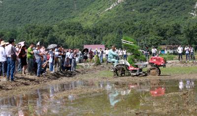 6月11日,荆门市农机局在东宝区子陵铺镇四坪村敬成家庭农场举办水稻基质育秧钵苗机插高产栽培技术现场演示,来自宜昌、荆州、荆门三地的农机专家和农机合作社代表实地观摩。该技术是荆门市2015年重点科技计划项目,由该市农机推广站实施,示范面积200亩,成功后将在全市推广。视界网朱舜摄