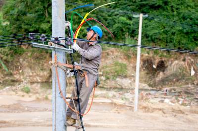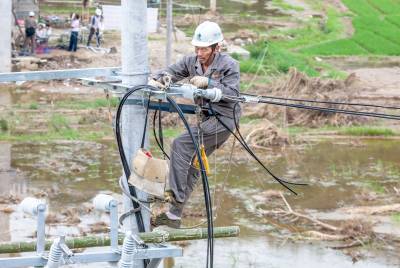 6月13日,湖北省崇阳县供电公司抢修突击队在石城镇长坪村、神口村等抢修被洪灾毁损的配电设施,力保灾区群众的生活用电。本月上旬强降雨突袭崇阳,造成该县肖岭、沙坪和石城3个乡镇的3.6万于用户断电。灾情发生后,咸宁供电公司启动应急预案,从检修分公司和通城县供电公司等单位调集抢修突击队支援崇阳抗灾抢修保供电。至13日傍晚,因灾断电的用户已有98%恢复供电。为克服路断桥毁给电杆和导线等运输带来的困难,咸宁供电公司将集结更多的抢修力量进行突击,力争用最短的时间全部恢复受灾群众的供电。