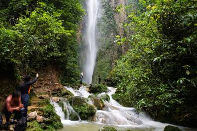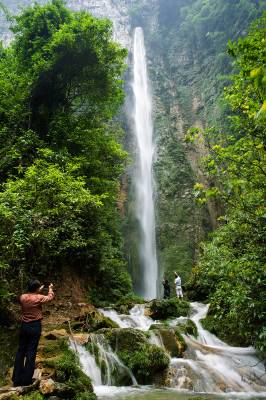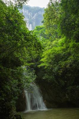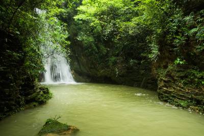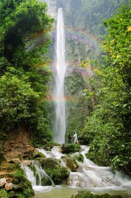 景阳瀑布风景区位于恩施州建始县景阳镇青龙河村,地处清江水布垭库区周边。景区交通便利,距景阳新镇35公里(路况良好);从清江码头沿支流青龙河溯江而上15公里,便到达瀑布风景区,其两岸峡谷幽深,风光绮丽。景区的瀑布奇观以雄、奇、险、秀为主要特色,瀑水约从80米高的绝壁悬崖的崖洞中喷涌而出,飞流直下,水花飘洒,时而还有三道彩虹相伴,真令人叫绝。这里冬无严寒,夏无酷暑,植被茂密,气候宜人,实属人间瑶池,天然氧吧,是人们徒步穿越、漂流探险、休闲度假、旅游光观的极好去处。
