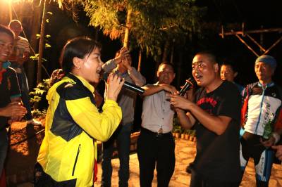 当天,湘鄂两地50余名自行车骑手聚集新塘长岭岗,长岭农家热心地为远道而来的客人准备了篝火晚会。新塘女歌手的独唱《美丽的新塘》拉开了晚会序幕,恩施骑手把《龙船调》、《六口茶》等山民歌献给了远方客人,华容骑手演唱的《浏阳河》赢得了阵阵掌声,最后,晚会在土家摆手舞中落下帷幕。