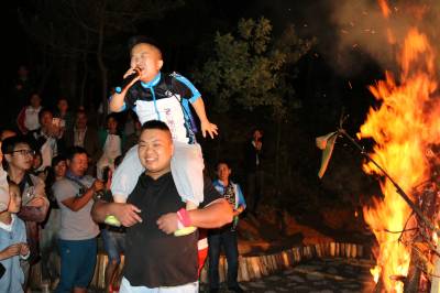 6月12日晚上8点,恩施市新塘乡长岭农家后院草坪里,篝火熊熊,歌声阵阵。湖北恩施与湖南华容两地自行车俱乐部组织的“壁挂公路公益骑行之旅”正在这里举行联欢晚会。