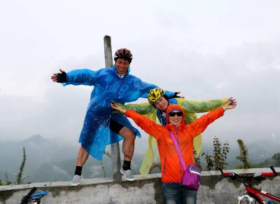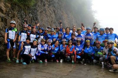 上午10时,天公作美,雨住云开,骑行指挥者用对讲机发布命令,骑手挑战挂壁天路正式开始,50多位身着统一服装的骑手依次驶入天路,五颜六色的自行车群把扯根坡装扮的更加美丽。下午1点,历时3小时的骑行结束,车队安全返回目的地。