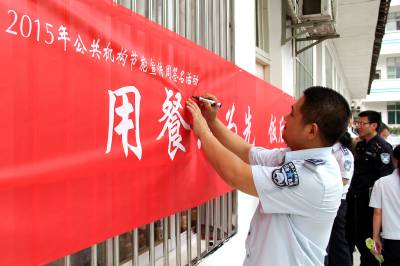 资源是人类生存和发展的重要物质基础,节约资源和保护环境是我国的基本国策。 6月15日,宣恩县城市管局在2015年全国节能减排宣传周来临之际,组织全体干部职工开展从我做起,从现在做起,从节约每一度电、每一滴水、每一张纸、每一升油等倡导节能减排,抵制铺张浪费和有害物质气体的排放倡议签名行动。图为100余名城管职工正在单位组织开展的节能减排活动现场签名。 (本报视界网:罗清峰摄)