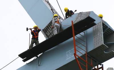 本报荆州讯(通讯员 孟庆虎) 6月15日,中铁大桥局蒙西华中铁路公安长江大桥工地的工人们正在进行连续钢桁梁第20个节间架设作业。至此,蒙华铁路公安长江公铁两用特大桥非通航孔连续钢桁梁架设已完成71.4%。