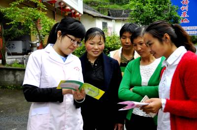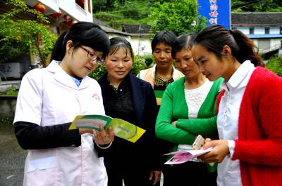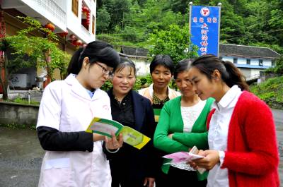 6月15日,医务人员正在向恩施市红土乡大河沟村群众宣传农村妇女宫颈癌免费检查有关政策。