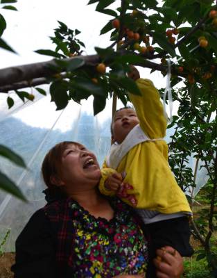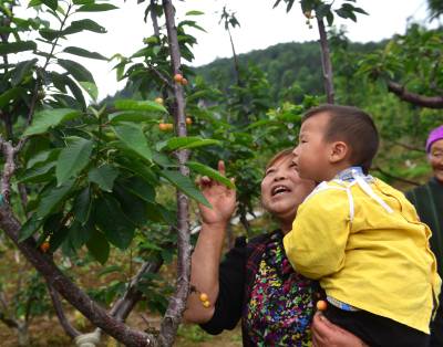 6月15日,在建始县花坪镇海拔1400亩的大石板一线千亩车厘子基地,年初移栽的部分车厘子已挂果,让当地农户欣喜不已。在绿满荆楚行动中,该镇引进客商,发展车厘子上千亩,引种成功,为当地乡村观光旅游添上一道亮丽风景线。本报视界网刘波摄 建始县新闻中心刘波联系电话13032794298