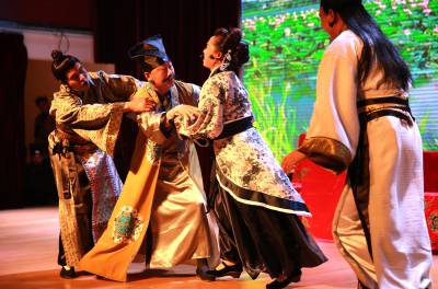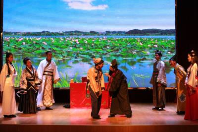 该剧目讲述了美丽的采莲女张丽英与书生李俊生曲折的爱情故事,情节跌宕起伏,生动描述了父母包办婚姻、攀附金钱权势的荒诞和丑陋。在传统戏曲改编过程中,通过“富二代”“官二代”“现场办公”等现代词汇念白,更加贴切的抨击和辩驳现代社会世俗的“拜金权婚姻观”。该剧选自郑邦清、郑承志的《建东花鼓戏选编》,由郑邦清创作。此次,秭归专门邀请了上世纪6、70年代就对秭归建东花鼓戏做过调研的专家参与剧目打造,该剧由宜昌国家一级导演陆洞元改编并导演,国家一级作曲向家驹担任唱腔设计和打击音乐设计创作。