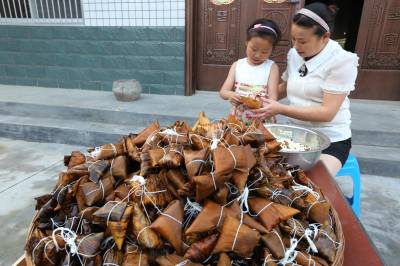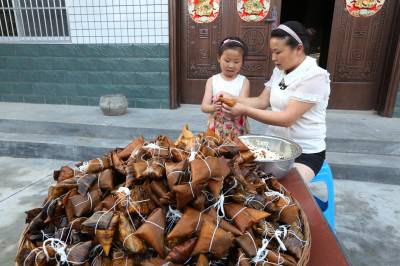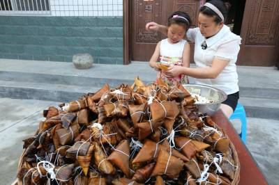 6月17日,竹山县宝丰镇施洋小学二(4)班学生陈檬檬正在向妈妈刘继娥虚心学习包粽子。端午节前夕,该镇各学校以“粽叶飘香,浓情端午”为主题,开展端午节系列活动。鼓励学生自觉参加包粽子等家务劳动,了解端午节的来历,感受品味端午节的独特魅力,从小接受传统民俗文化的熏陶。
