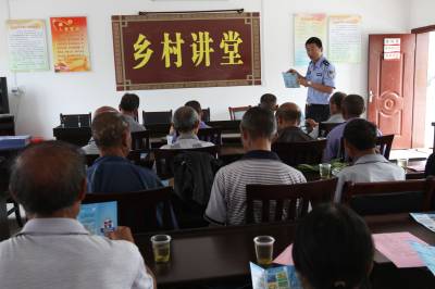 乡村讲堂育新风 6月18日,民警在竹溪县蒋家堰镇黄石头村乡村讲堂讲解法律知识。近年,竹溪县充分利用乡村讲堂开展专题辅导、知识培训、志愿服务、现场示范等形式培训,以培育新农民,传递正能量。据悉,该县乡村讲堂(含县直单位)已达233个。(本报视界网颜义众柏元军摄)