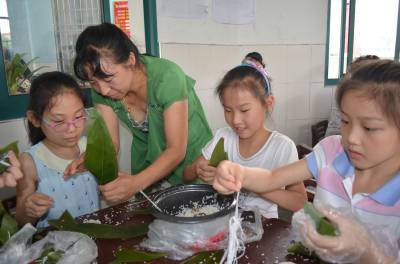 6月18日,武汉市江夏区实验小学在端午节前夕开展了“我们的节日·端午”主题文化活动——包粽子。同学们在老师和家长的指导下兴致勃勃地学包粽子,老师则借端午这个传统节日引导同学们在包粽子的民俗活动中体验端午民俗,感受节日传统,达到了认知传统、尊重传统、继承传统、弘扬传统的目的。(视界网 张超)