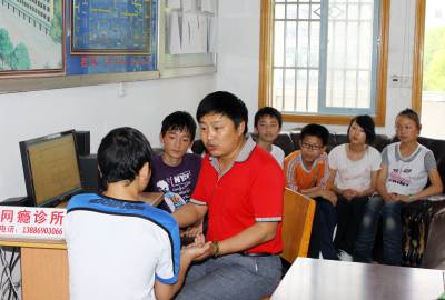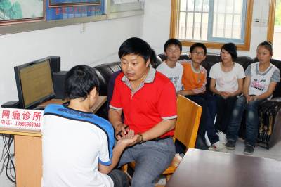28日,在京山县新市镇第二中学教师陈安忠创办的”网瘾诊所”教室里,陈安忠老师正逐一地跟几个因迷恋网络的学生进行交流,了解他们现在的学习近况,了解他们遵守纪律的情况以及他们家里的情况。陈安忠是京山县镇第二中学的一名英语教师,今年49岁,连续三年主动请缨下乡支教。在三个偏远乡村的支教中,他自费开办”爱心书屋”,创办”脱网瘾”心理诊所,救助农村贫困生,作近百名留守学生的代理家长。7年来,他先后利用业余时间义务帮助了300多名患”网瘾”的孩子脱瘾,并总结出一套行之有效的解除网瘾的办法。先后被湖北省荆门市、京山县授予荆门市”十大杰出志愿者”称号、荆门市”十大爱心大使”称号,京山县”十大师德标兵”称号,是京山县第一个也是唯一的一名入选湖北省151工程师德人才库的教师。他还是一个义务献血”专业户”,从2000年开始坚持献血,十年来,他已经献血3600毫升,相当于把全身的血都换了一遍。通讯员李凯柳红琼文/图