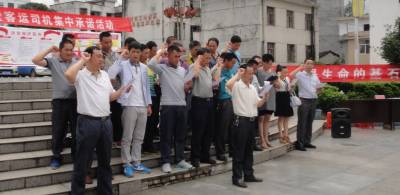 (焦进摄)我庄严承诺:“不超速、不超员、不疲劳驾驶、不接打手机、不关闭动态监控系、确保乘客系好安全带、确保乘客生命安全…….”。18日上午,盛家坝乡富盛客运公司驾驶员齐声向社会公开宣誓承诺。