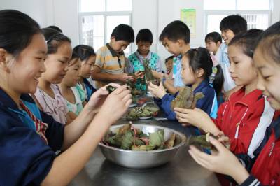 为迎接传统民俗文化节日——端午节,6月19日,竹山县城关莲花林东侨心小学利用课外活动组织5年级学生聚在一起参加包粽子、品粽子,讲传统民俗文化故事。端午节吃粽子是中国的传统习俗,每逢节日来临,竹山县各学校都要组织学生参加“包粽子、品粽子、说粽子”活动,以传承传统民俗文化节日。竹山粽子以玉米为主料,以小豆、红豆或葡萄干为馅料,用新鲜蕉叶包成长方形,焙干蕉叶,粽子即熟,剥开粽子,清香四溢。吃粽庆节,别有一番情趣。