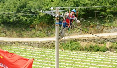 6月19日,电力工人在保康县后坪镇堰塘冲村三组进行低电压改造。
