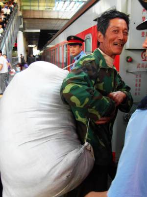 【签约摄影师罗超】随着三夏(夏种、夏收、夏管)时节的到来,都市务工农民朋友陆续离开岗位,携着行囊,返回家乡。近日,一位湖北襄樊农民工带着刚从工地上走下来的疲惫身躯,背负所有家当和希望,依然精神兴奋地在北京西客站赶乘K279次列车,踏上返乡之旅。图为湖北农民工朋友满怀期待地登乘K279次列车返乡时的情景。