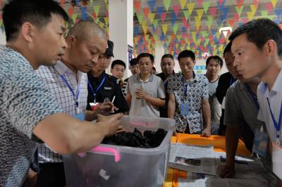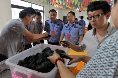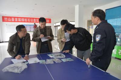 竹山县是绿松石的主产地,理论储量约为5万吨,可供开采的仅为3万吨,占全球的储量的60%。为了从源头上理顺绿松石市场管理混乱局面,规范绿松石科学开采,发挥公盘交易对绿松石市场价格的导向作用,继去年竹山开展绿松石公盘交易后,该县借鉴缅甸翡翠公盘交易的做法,完善《竹山绿松石公盘交易规则》,组织专家组对参与公盘交易的绿松石原石分设标的,定出底价,组织竞标人看标议标,最后采用明标方式公开竞价。