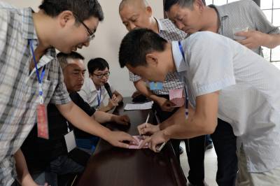 19日下午3时30分到4时整,开标竞价过程顺利进行。竞标现场入口和每个标的箱前,都有公安干警把守,相关工作人员维持秩序,41名参与竞标人挂牌入场,评议加价幅度,认真填写报价单,以便理性出价。主席台内的竞标栏里,被刷新的报价单一一上榜公示。竞价过程中,1 号、2号标的自始至终被高度关注,分别经过7轮和8轮报价刷新,在竞标最后30秒内定格在188万和171万元;遇冷的3号标也在倒计时10秒左右,以高出底价100元成交。价高得货者当场签字画押,公证人员对公盘交易活动进行全程公证。