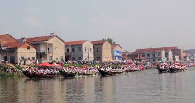 6月20日是我国传统佳节端午节。当日,黄梅县小池镇、孔垄镇、分路镇等乡镇农民利用湖汊纵横、河港宽阔优势,自发组织龙舟队,并开展友谊赛,上演你追我赶的龙舟竞技,共同庆祝端午节的到来,不仅丰富了群众文化生活,而且弘扬了中华传统文化。图为该县小池镇东港龙舟竞渡一角。(视界网 吴志雄 摄)