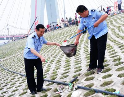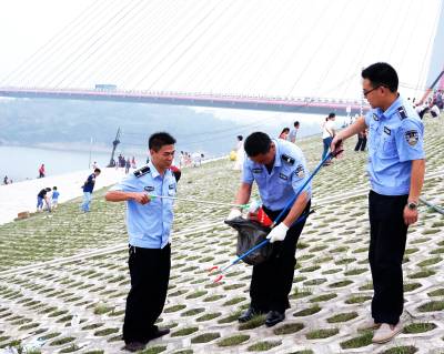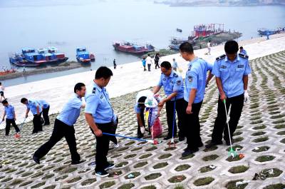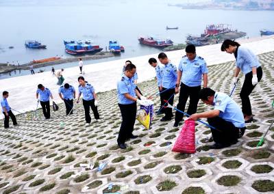 6月20日是端午节,当天下午,十堰市郧阳区30余名执法队员来到龙舟赛结朿现场捡拾拉圾,以护佑南水北调中线工程水源区水质安全,在3000多平方米堤岸和江边共装袋拉圾9袋。 视界网周家山 摄